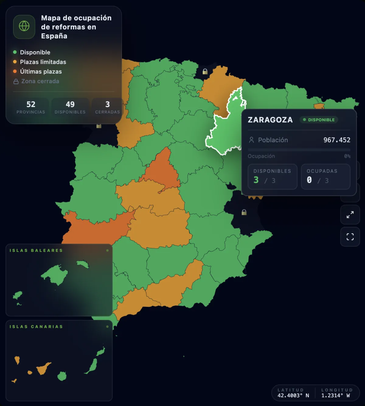 Con nuestro mapa interactivo ves en tiempo real qué ciudades tienen plazas disponibles y cuáles ya están cerradas. Y además puedes: